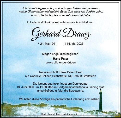 in dieser Zeit des Schmerzes wünschen wir Ihnen Kraft, den Verlust im Kreise Ihrer Liebsten zu verarbeiten. Als Zeichen unserer Anteilnahme und des Gedenkens entzünden wir dieses erste Licht. Möge diese Gedenkseite Ihnen helfen, Erinnerungen zu teilen und so das Andenken gemeinsam wachzuhalten.