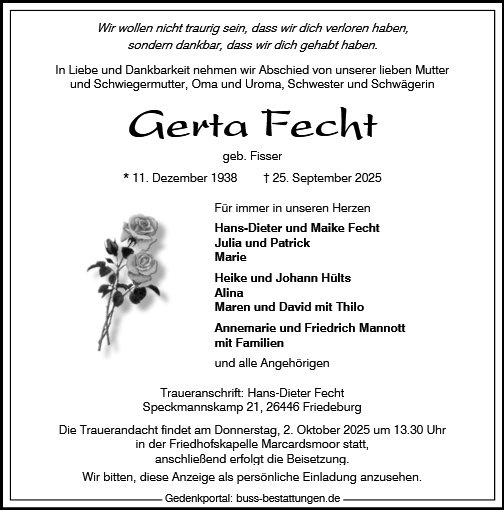 wir wünschen Ihnen von Herzen viel Kraft, dass Sie Menschen um sich haben, die Ihnen in dieser schweren Zeit beistehen und Halt geben. Zusätzlich können Sie auf dieser Gedenkseite Erinnerungen teilen und so das Andenken gemeinsam wachhalten.