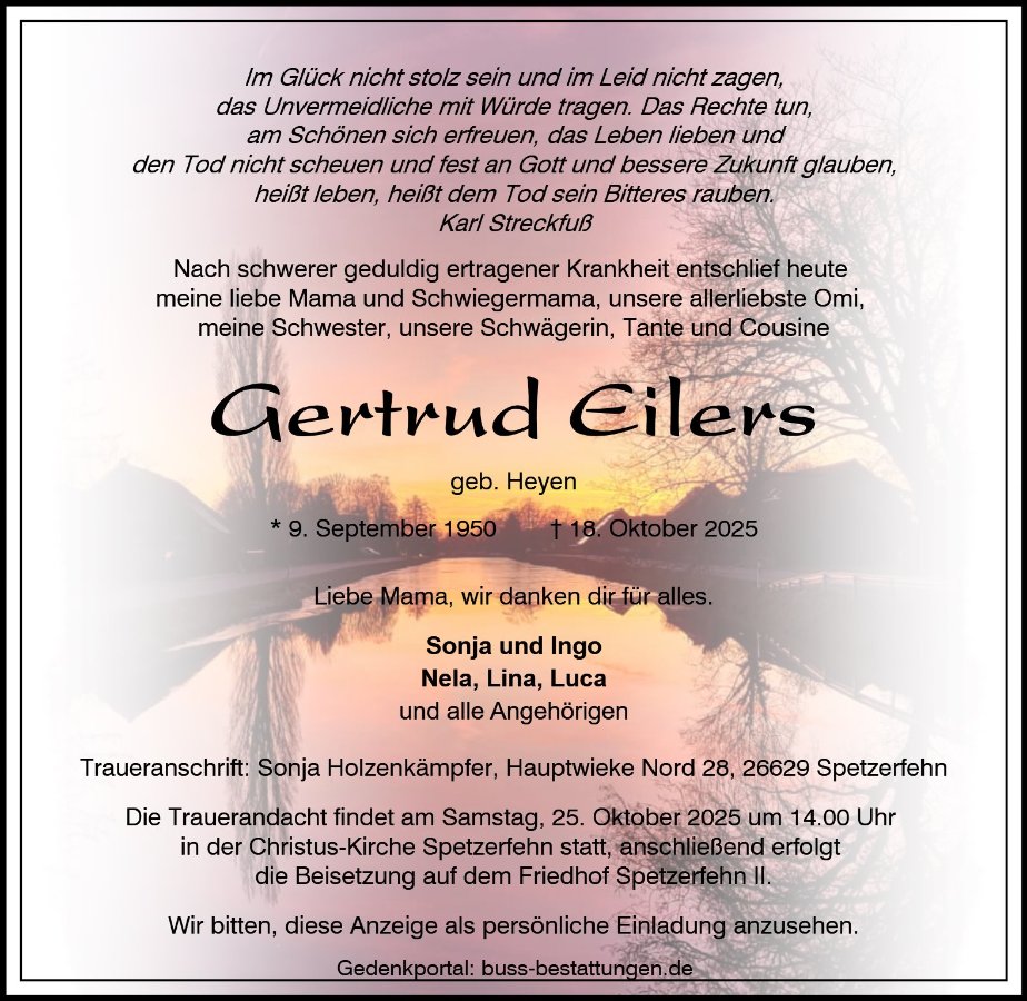 Gertrud Eilersgestorben am 18. Oktober 2025