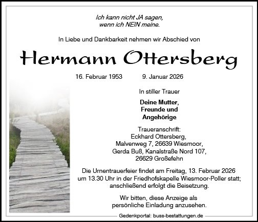 Lieber Hermann, das Jahr 2026 beginnt mit vielen Übertritten ins Jenseits. Mögen Eure Reisen im Frieden ihre Vollendung finden. Viele Grüße und mach et jot Holger "Klein Alu"