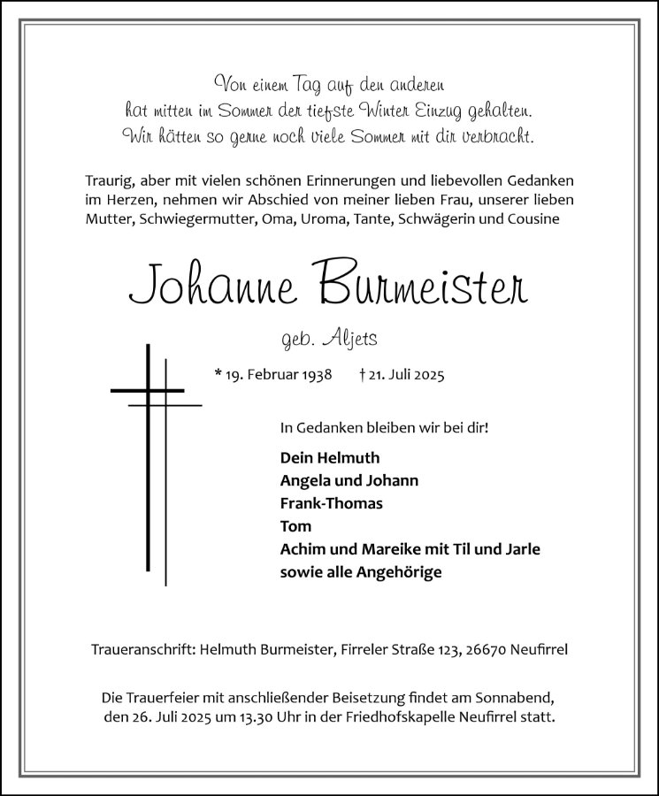 in dieser Zeit des Schmerzes wünschen wir Ihnen Kraft, den Verlust im Kreise Ihrer Liebsten zu verarbeiten. Als Zeichen unserer Anteilnahme und des Gedenkens entzünden wir dieses erste Licht. Möge diese Gedenkseite Ihnen helfen, Erinnerungen zu teilen und so das Andenken gemeinsam wachzuhalten.